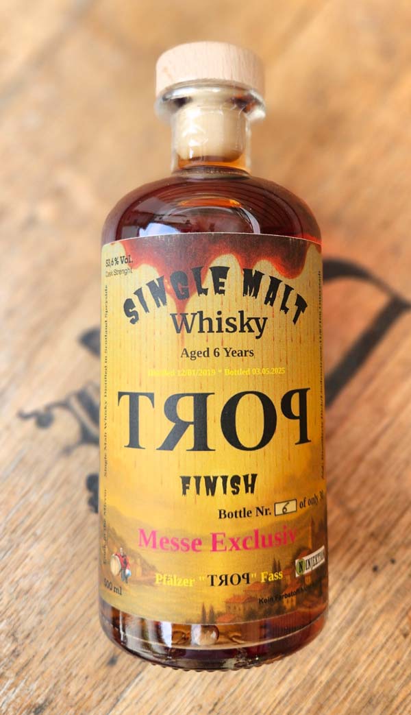 Entdecke unseren Single Malt Whisky aus dem Hause Ninjektion – ein echter Ausdruck seiner Region. Ganze 6 Jahre gereift, davon fast 2 Jahre im besonderen TROP-Fass (aus der Pfalz) gefinisht. Warum TROP? Der echte Fassname ist geschützt – hältst du das Etikett vor einen Spiegel, enthüllt sich das Geheimnis.